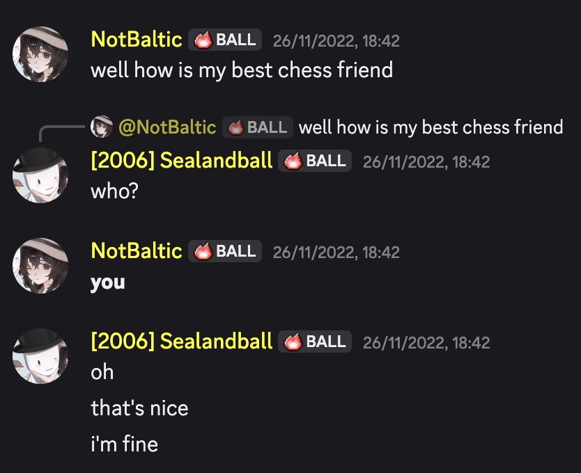 When NotBaltic called Sealandball her "best chess friend"
